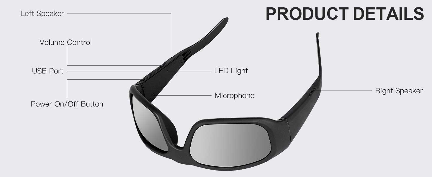 The glasses feature crystal-clear stereo Hi-Fi audio reproduction.