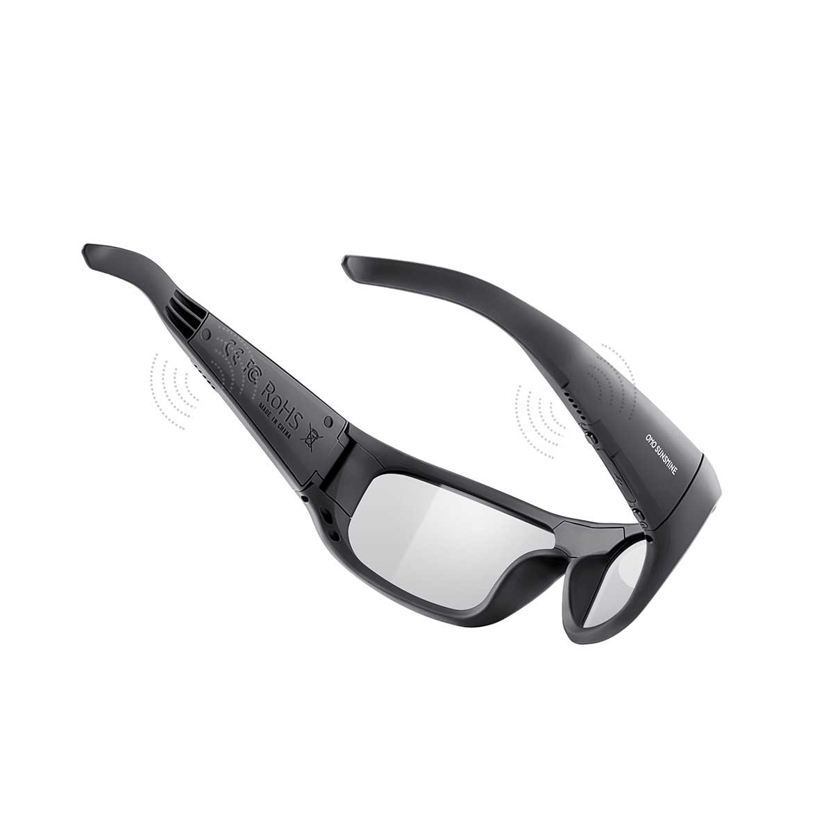 Gafas inteligentes OhO Sunshine Pulse con Bluetooth y altavoz de oído abierto con lente polarizada negra