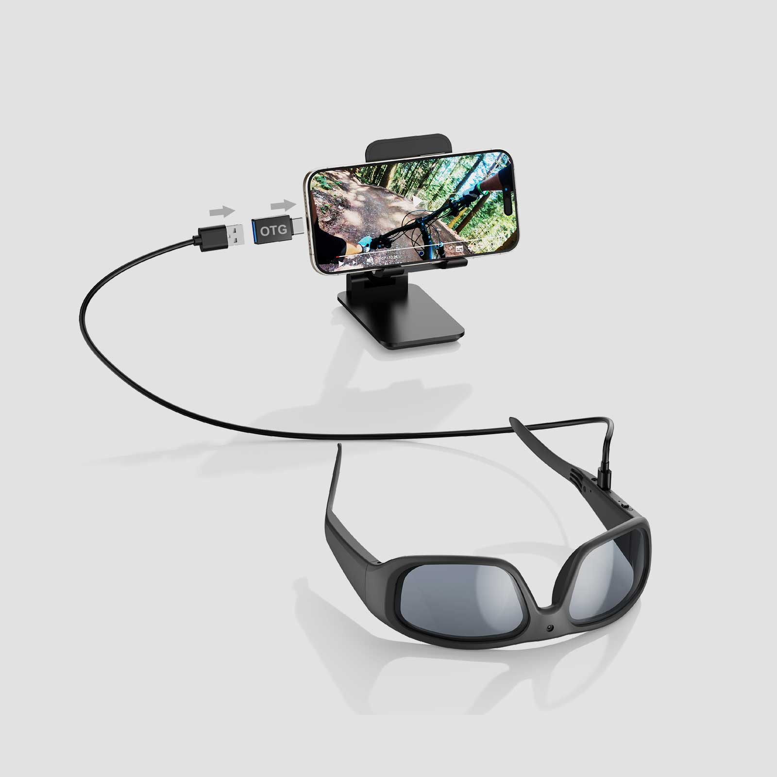 - Camera Glasses with Continuous Recording Feature: The built-in battery provides approximately 90 minutes of recording time per charge. For extended use, you can connect a power bank via USB Cable to charge while recording. Playback your footage on any computer, phone or TV using the included Type-C USB cable and OTG converter.